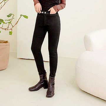 排釦彈力包覆美型芭蕾舞合身窄管褲-OB大尺碼
