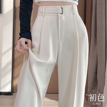 奶油杏色 精紡羊毛 3色 褶皺休閑直筒心機西裝褲 版型顯瘦絕絕子