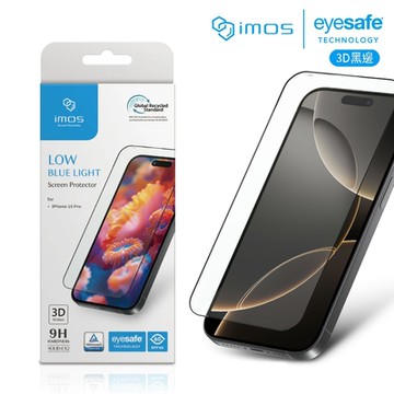 imos iPhone 16 Pro 6.3吋 德國萊因認證 3D黑邊RPF60低藍光螢幕保護貼