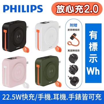 PHILIPS飛利浦 10000mAh放心充2.0 FunCube多合一磁吸行動電源 Type C 37Wh_具Wh標示-DLP4348C