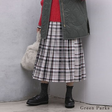素色/格紋荷葉邊分層抓褶設計長裙(0F000426410) - Samansa Mos2