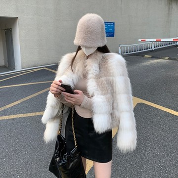 [米蘭精品] 皮草外套狐狸毛大衣-女洋氣年輕短款女外套瑪瑙色74iq1