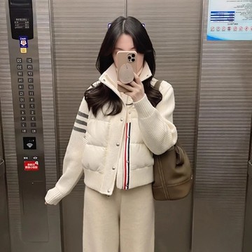 美式復古粉拼黑三條杠羽絨服女冬季2025年新款夾棉小個子加厚棉服