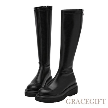素面厚底及膝靴