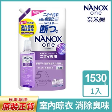 日本獅王奈米樂超濃縮抗菌洗衣精補充包1530g