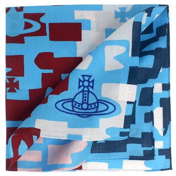 Vivienne Westwood 刺繡星球LOGO抽象圖樣塗鴉底圖純棉帕領巾(藍)