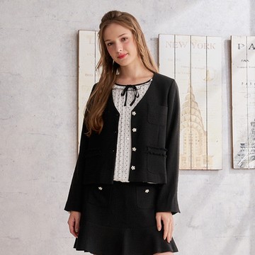 ST.MALO黑金石墨烯溫控雙C鑽紋修身精品女外套-獨