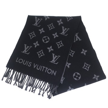 [平輸版]Louis Vuitton Essential Monogram圖案羊毛圍巾(黑色)真品平輸