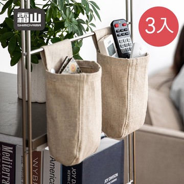 日本霜山 復古風棉麻可懸掛收納袋-3入