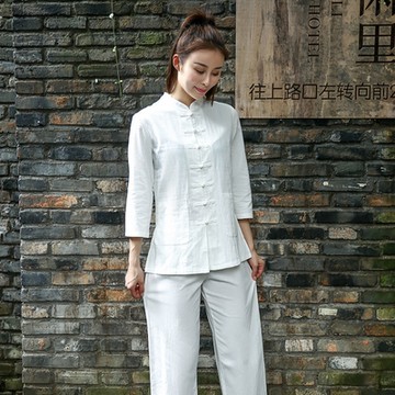 春季新款民族風復古文藝 改良漢服打坐茶服瑜伽服棉麻禪服女1入