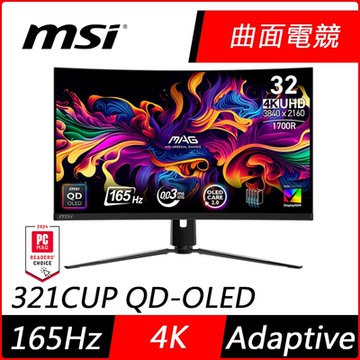 MSI微星 MAG 321CUP QD-OLED 32型 165Hz 4K HDR曲面電競螢幕
