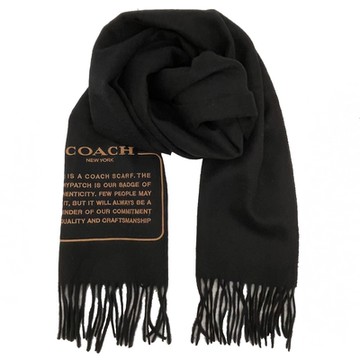 COACH 新款素面字母100%克什米爾羊毛流蘇保暖圍巾(黑)