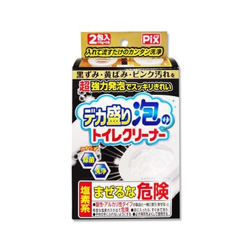 日本Lion Chemical獅子化工-PIX免刷洗強力發泡馬桶清潔粉110gx2包/盒(泡沫消臭洗劑,去黑霉污垢,衛浴潔廁用品)