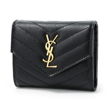 YSL 經典山形紋 三摺短夾 大開口零錢袋 (黑色 x 金字) Monogram Saint Laurent