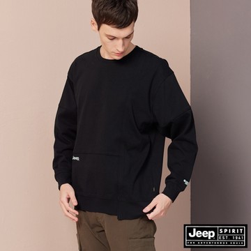 DAKYAM 羅紋拼接圓領套頭長袖衛衣休閒純棉上衣