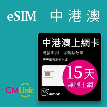 【citimobi 上網卡】eSIM中港澳15天上網吃到飽 (1GB/日高速流量)