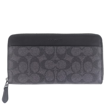 COACH 防刮LOGO ㄇ型拉鍊長夾(黑灰)