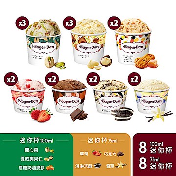 哈根達斯Haagen-Dazs經典派對迷你杯/夏果/巧克/抹茶/淇巧/草莓/香草/100ml/12入/組