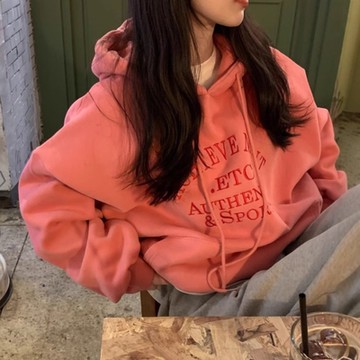 MOCO韓版chic美式休閒風英文字刺繡印花設計百搭長袖連帽內裡加厚加絨衛衣