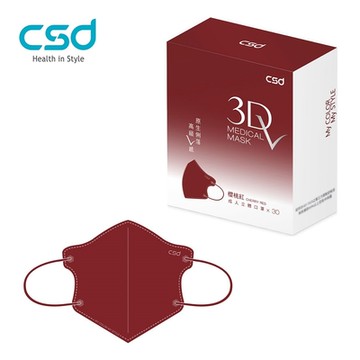 【CSD】中衛醫療口罩 成人立體3Dv 櫻桃紅(30片/盒)
