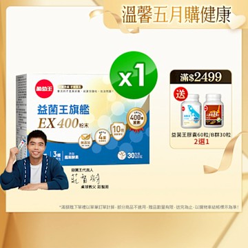【官網獨家大組優惠】-益菌王旗艦EX 400粉末 30包x12盒 (※此組合下單就送易得纖30粒 x 1瓶 + 醣安欣 x 2瓶)