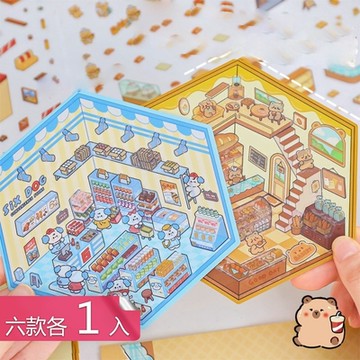 【荷生活】撕取順滑可反覆黏貼造景貼紙 主題豐富激發創作慾立體造景貼-6款各1入組