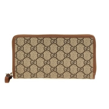 GUCCI 經典GG Supreme印花帆布拉鍊長夾(咖啡色)