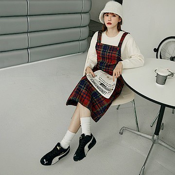 hi~夏天的夢 復古碎花格子高腰連身裙