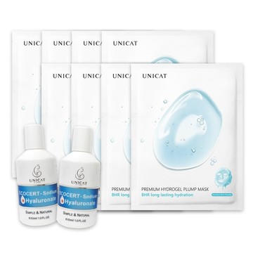 UNICAT 高純度99%玻尿酸原液 30mlX2 + 八小時保濕水光面膜 共8片