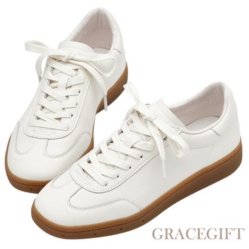 【Grace Gift】質感日常全真皮拼接德訓鞋 白