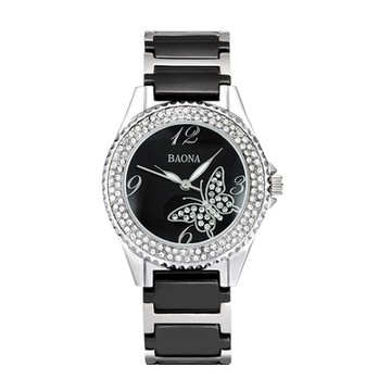BAONA 寶納 時尚陶瓷晶鑽系列腕錶(錶徑38mm不含錶冠/黑陶/蝴蝶)