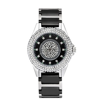BAONA 寶納 時尚陶瓷晶鑽系列腕錶(錶徑38mm不含錶冠/黑陶/滿天星)