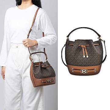 MICHAEL KORS Reed 中款金字圓標MK腰帶防刮Logo水桶兩用包(咖啡色/中)