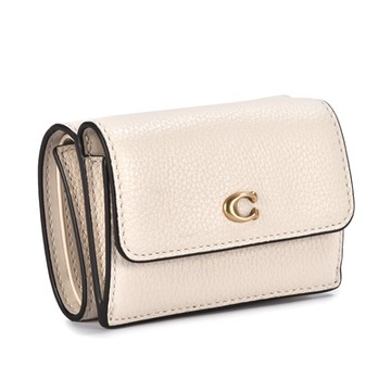 COACH 專櫃款 素面荔枝紋皮革三折迷你小短夾-白色
