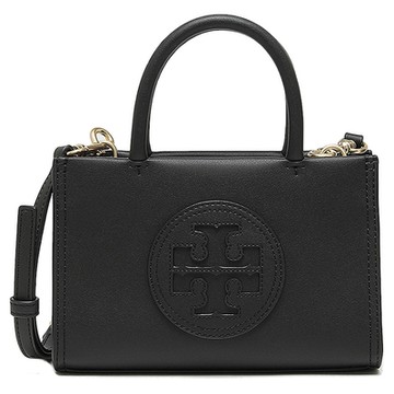 TORY BURCH 專櫃款Ella 圓標磁釦式迷你斜背皮革托特包(黑色)