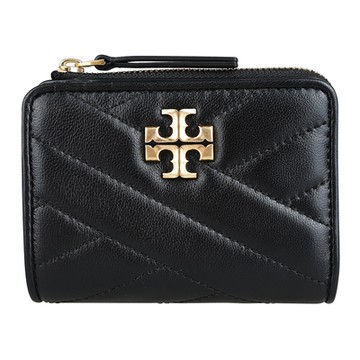 TORY BURCH Kira雙T標誌V型紋絎縫納帕皮革扣式拉鍊零錢短夾(黑)
