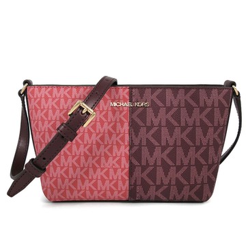 MICHAEL KORS JET SET TRAVEL 金字LOGO酒紅色防刮滿版小斜背包