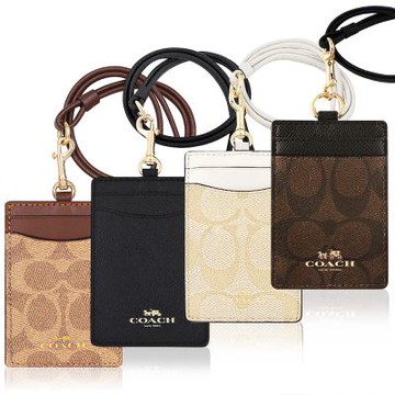 [平輸版] 【COACH】深咖PVC拼黑邊真皮掛勾悠遊卡一卡通證件夾/票卡夾 真品平輸