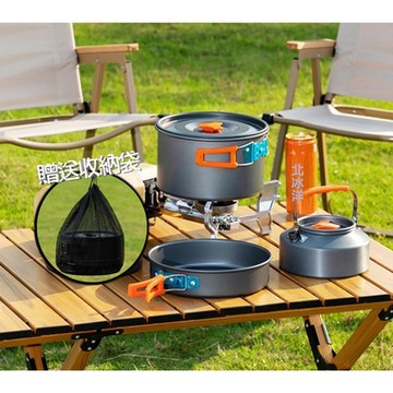 戶外野餐露營3人野營便攜水壺煮茶爐登山野炊自駕燒烤不粘鍋餐具