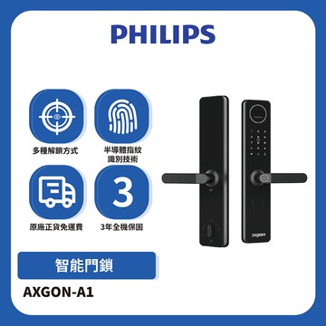 【Philips 飛利浦】 ALPHA 五合一推拉式電子鎖 曜石黑(指紋│卡片│密碼│鑰匙│WIFI/含安裝)