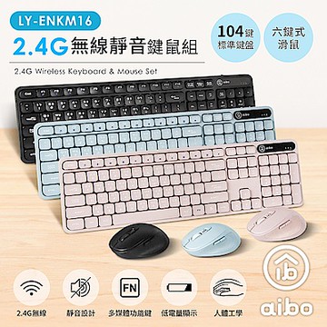 aibo KM16 2.4G無線靜音鍵鼠組(標準鍵盤+六鍵滑鼠)