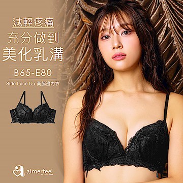 aimerfeel-[單品內衣]副乳舒適胸罩蕾絲交叉包覆高脇邊內衣-黑色2-603713-BL2
