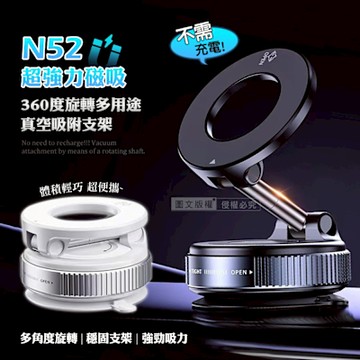 黑曜Pro N52 超強力磁吸手機架 360°旋轉可折疊 真空吸附支架 車架/桌上立架