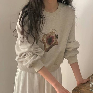正韓T恤 早餐印花長袖T恤FIE1068-創翊韓都