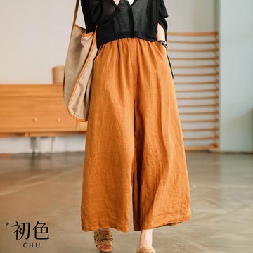 2025春夏寬松直筒花邊闊腿褲顯瘦長褲 棉麻凈色裙褲簡潔百搭