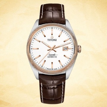 TITONI瑞士梅花錶 宇宙系列(878 SRG-ST-606)白錶盤/褐色皮帶/41mm