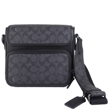 COACH Sullivan男款雙C滿版翻蓋相機包斜背包黑灰色