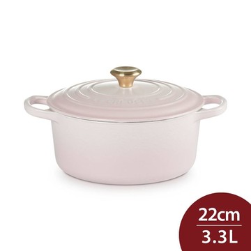 Le Creuset 琺瑯鑄鐵圓鍋 22cm 3.3L 貝殼粉 法國製 湯鍋 燉鍋 (電磁爐 IH爐可用)