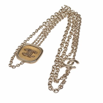 CHANEL 經典方形雙C LOGO粗鍊造型多層次長項鍊(金)