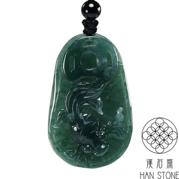 【雅紅珠寶】 天然老坑冰種翡翠玉項鍊-魚-蓮花-如魚得水